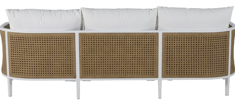The Havana Cane Sofa blends timeless style with lasting durability, featuring handwoven N-Dura Resin Wicker over a powder-coated wrought aluminum frame for superior weather resistance. Designed for outdoor lounging and entertaining, this elegant sofa offers both strength and comfort, making it a perfect addition to patios, terraces, and open-air living spaces.